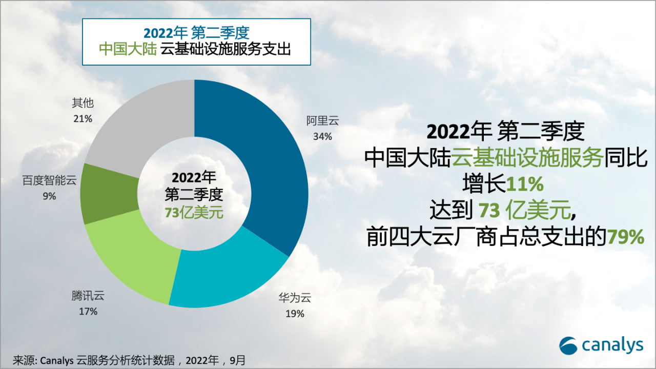 Canalys:2022 年第二季度中国云服务支出达到 73 亿美元