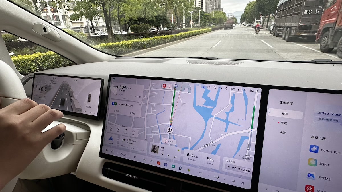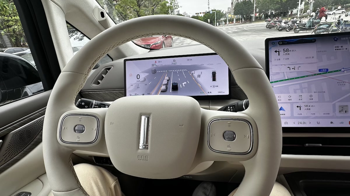 坐到车内,科技风扑面而来。中控屏幕能够看到Coffee OS 3体系,用的是8295芯片,支撑Coffee GPT大模型以及HiCar/Carlink手机互联。26英寸SR-HUD昂首显现能够给司机简练的信息辅导。整个驾驭的视界,对周边环境的视觉仍是很宽广的。