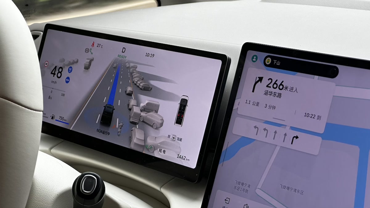 官方表明能够辨认车前50米内的锥桶、多种散落物和障碍物,完成高速NOA、城市NOA、回忆泊车、遥控泊车、倒车循迹。从体系的界面来看,也十分直观,用户简直不需求学习本钱就能了解控制。
