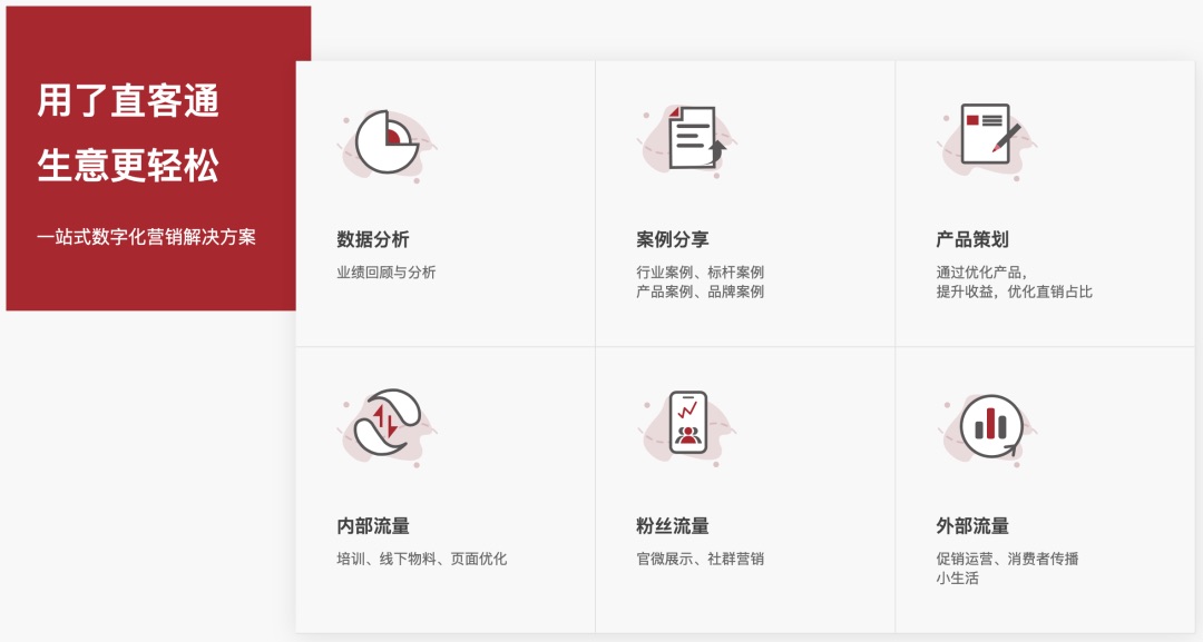 直客通成立于 2014 年,是“买卖型 SaaS + 服务”的数字化营销服务商,协助高星酒店及景区在微信生态开设官方直销店。直客通为协作商户供应包含会员办理、运营支撑、途径流量衔接、广告策划及投进、数据统计分析等全方位服务,专心为酒旅职业供应产品在线化、营销在线化、付出在线化、服务在线化的归纳数字化营销计划。