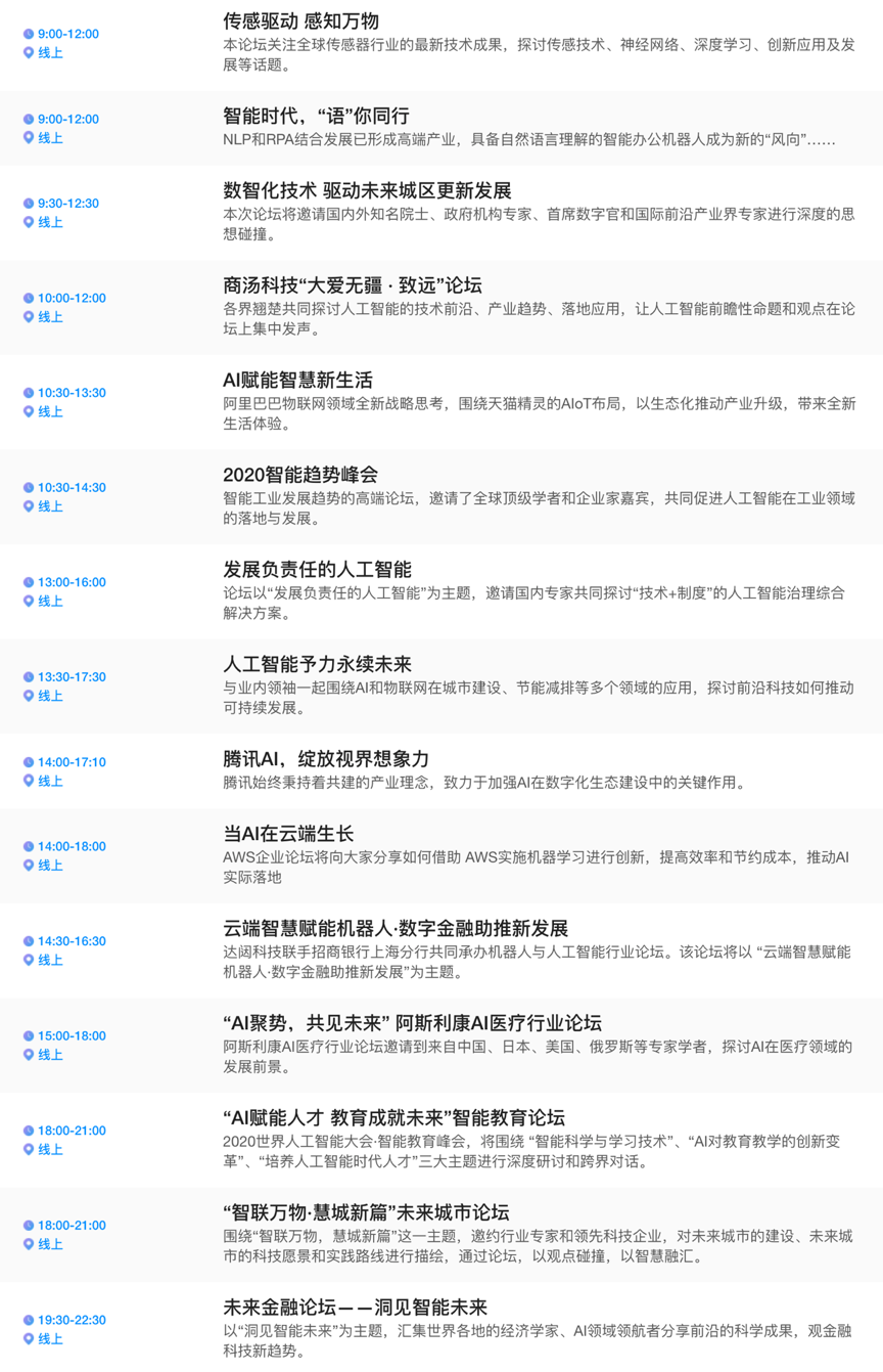 据了解,本年大会打造全新的线上会议渠道,完成3×24小时全天候内容输出,经过1场开幕式、2场全体会议、10+主题论坛、若干职业论坛等的“1+2+10+X”内容板块,构成以上海演播厅为主体,美国、德国、法国、新加坡多地演播室相照应的并机同播盛会。一起大会将供给“3D虚拟AI家乡”云展览,立异线上互动体会方式,展现AI使用场景处理新方案。