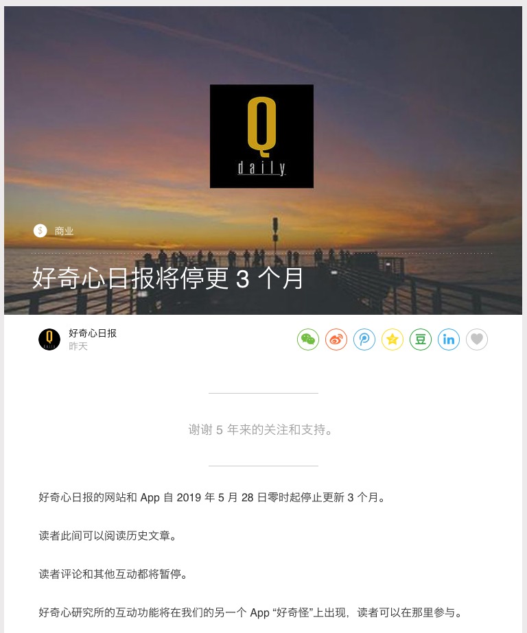 5 月 27 日晚,好奇心日报忽然发布一则